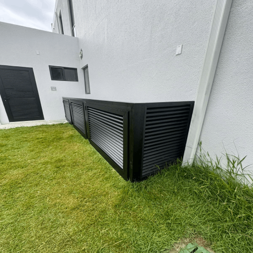 Cerramientos en sistema louver para mayor ventilación. Puertas y ventanas corredizas o abatibles con gran variedad en tonos de aluminio. Control de flujo de aire eficiente.